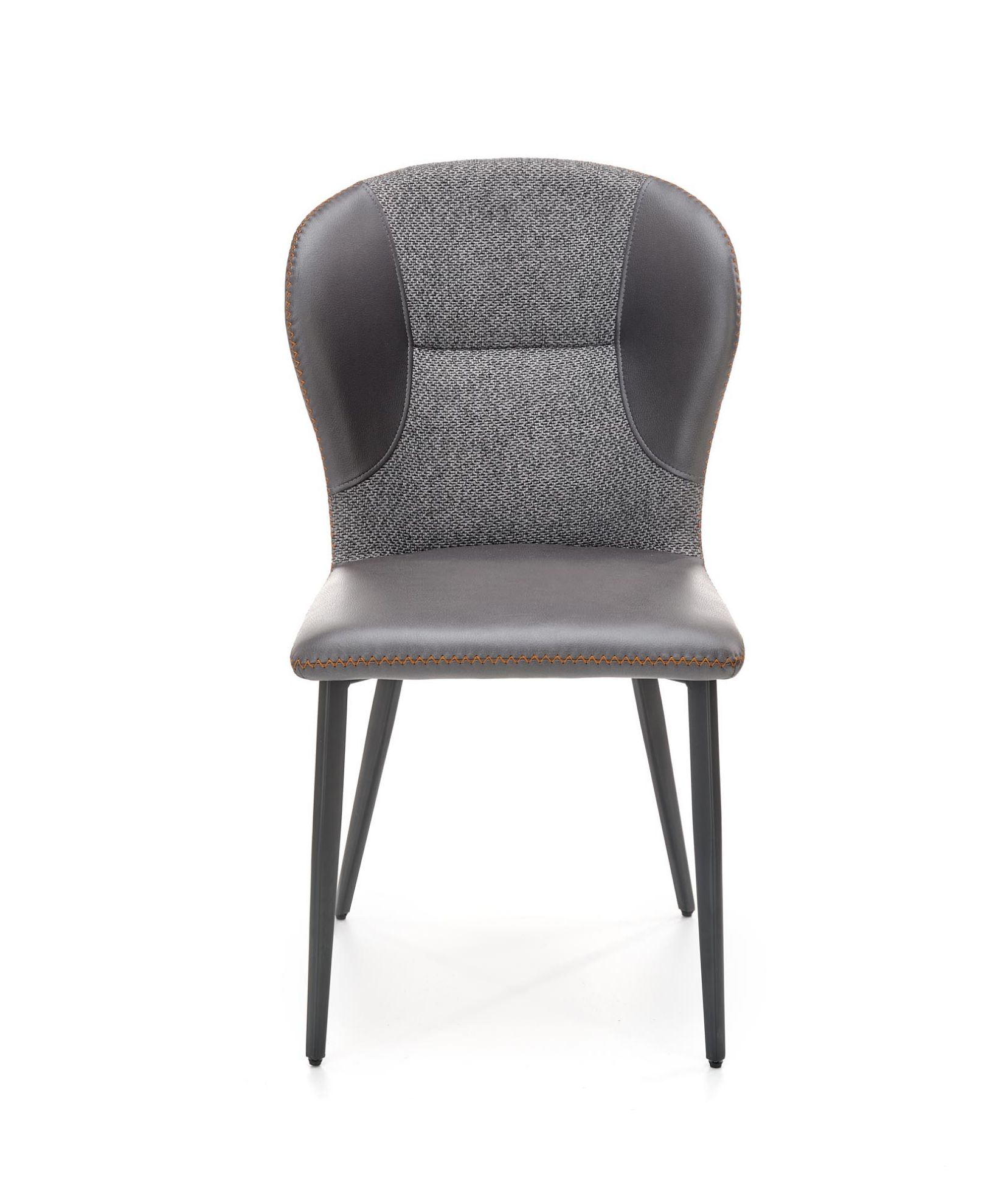 Krzesło Terra to eleganckie i wszechstronne krzesło, które wyróżnia się pięknym połączeniem trzech materiałów - miękkiej tkaniny, wytrzymałej eco skóry i solidnej stali malowanej proszkowo. Siedzisko i oparcie tego krzesła zostały starannie pokryte wysokiej jakości tkaniną w odcieniu ciemnego popiela, co nadaje mu przytulnego wyglądu i miękkości w dotyku.
