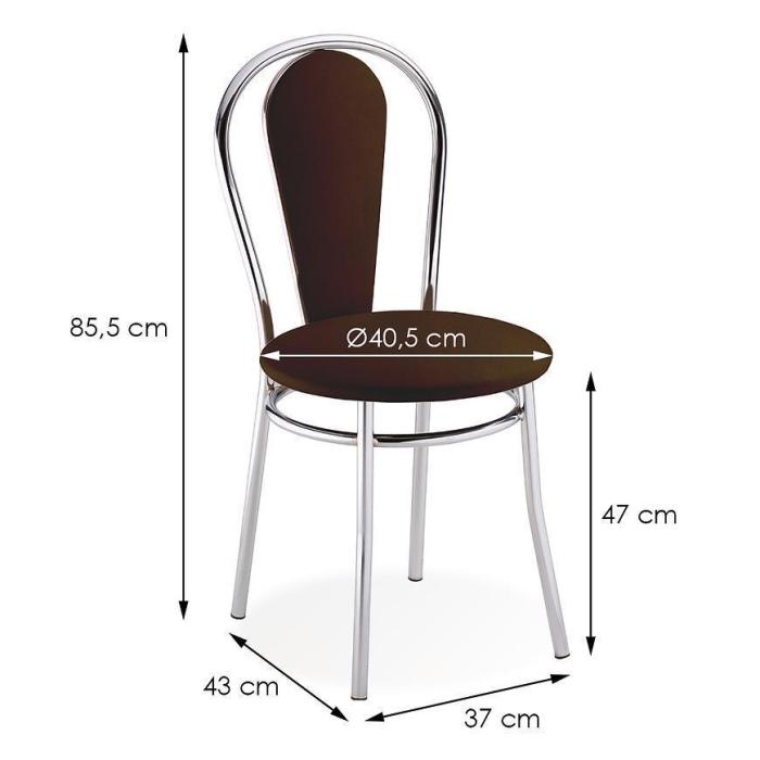 Stelaż krzesła został wykonany z metalu, natomiast siedzisko tapicerowane jest ekoskórą. Wysokość do siedziska wynosi 47 cm.