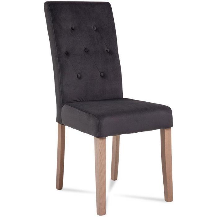 Tapicerowane krzesło Venus zostało obite gęstą tkaniną Riviera typu velvet z lekkim połyskiem. Ten przypominający aksamit materiał będzie się mienić podczas użytkowania ze względu na dłuższy niż w gładkich tkaninach włos. Mebel ma proste drewniane nogi w wybarwieniu dąb sonoma, na oparciu zaś zastosowano ozdobne, zaakcentowane guzikami pikowania nawiązujące do klasycznego brytyjskiego stylu Chesterfield. Z tego względu krzesła Venus sprawdzą się we wnętrzach eklektycznych, których wystrój stanowi pomieszanie stylów, epok i kierunków artystycznych. Będą doskonałym uzupełnieniem zarówno masywnego dębowego stołu, jak i futurystycznego przejrzystego blatu opartego na metalowym stelażu. Ozdobią elegancki salon, ocieplą surową salę konferencyjną, sprawdzą się też w klubowych wnętrzach.