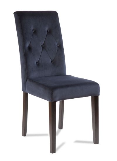 Jednym z najważniejszych elementów tego krzesła jest tapicerka. Pokrycie krzesła wykonane zostało z aksamitnej tkaniny Riviera, która nadaje mu niepowtarzalny, luksusowy wygląd. Wspaniale gładki materiał w głębokim odcieniu ciemnego granatu wtapia się w różnorodne aranżacje wnętrz, dodając im odrobiny tajemniczości i elegancji. Aksamit jest nie tylko piękny wizualnie, ale także miękki i przyjemny w dotyku, co gwarantuje niezapomniane doznania podczas użytkowania krzesła.