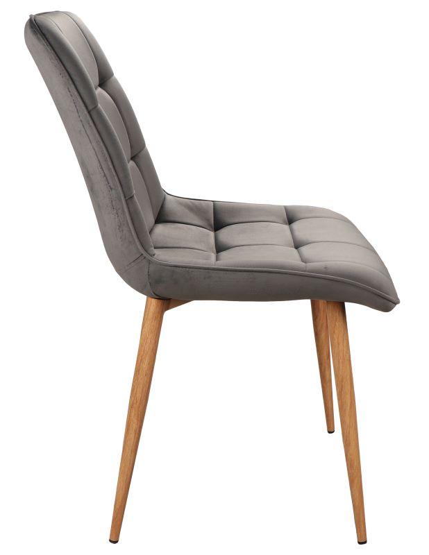Podsumowując, krzesło Viva 2 to harmonia designu, komfortu i trwałości. Jego subtelny odcień popielatego, aksamitna tapicerka Bluvel, ozdobne pikowania oraz metalowy stelaż w kolorze dębu tworzą niezwykłą mieszankę stylu i funkcjonalności. Doskonale sprawdzi się zarówno w nowoczesnych, minimalistycznych aranżacjach, jak i w bardziej klasycznych przestrzeniach. Daj się oczarować niepowtarzalnemu urokowi krzesła Viva 2 i wprowadź do swojego wnętrza nutę luksusu i wyjątkowości.