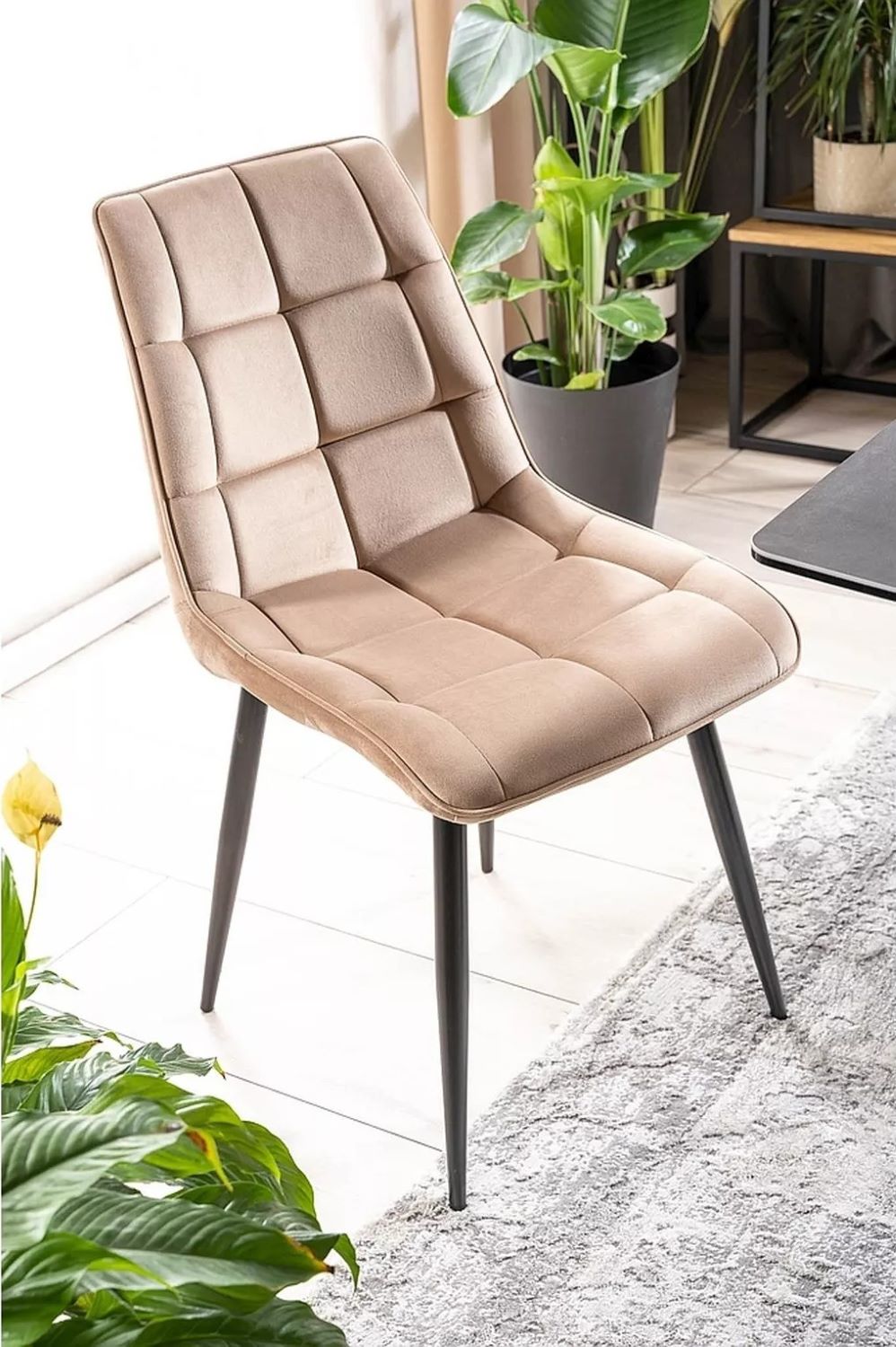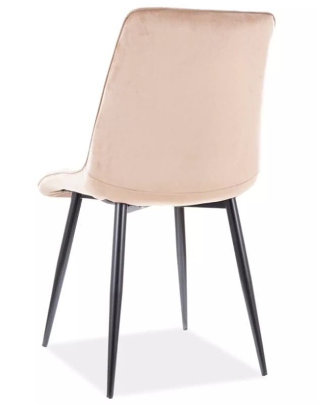 Krzesło Viva to połączenie wygody, estetyki i solidności. Tapicerowane tkaniną aksamitną Bluvel w kolorze beżowym, ozdobione wciągami i przeszyciami, to mebel, który doda Twojemu wnętrzu nowoczesnego charakteru. Stelaż metalowy w kolorze czarnym zapewnia trwałość i stabilność. Wybierz krzesło Viva, aby cieszyć się nie tylko komfortem, ale również pięknem we własnym domu lub biurze.