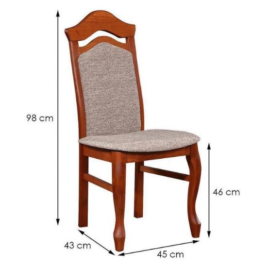 Krzesło, które idealnie wpasuje się w jadalnie, pokój dzienny lub inne pomieszczenie. Krzesło wniesie do wnętrza elegancję oraz ciekawy wygląd. Dzięki swojej kolorystyce skomponuje się z większością aranżacji. Wysokość do siedziska wynosi 46 cm.