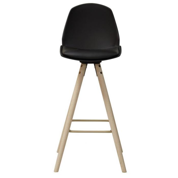 Stołek posiada wygodne siedzisko oraz oparcie, które zapewniają komfort podczas użytkowania. Oparcie pozwala na swobodne ułożenie pleców, co stanowi wygodę podczas dłuższych spotkań z rodziną i przyjaciółmi. Siedzisko jest wygodne i tapicerowane skóropodobnym tworzywem. Jest to minimalistyczny rodzaj mebla, który dzięki uniwersalnej i stonowanej kolorystyce, będzie pasować do wielu aranżacji. Doskonale wpasuje się w każdą jadalnie i nie tylko - stołek świetnie sprawdzi się również w innych pomieszczeniach, jak na przykład kuchnia czy pokój dzienny. Nóżki wykonane są z drewna dębowego w kolorze naturalnym, co dodatkowo ozdobi całość mebla i nada odpowiedniego stylu. Stołek posiada cztery nóżki, które zagwarantują stabliność. Dodatkowo nogi są olejowane.