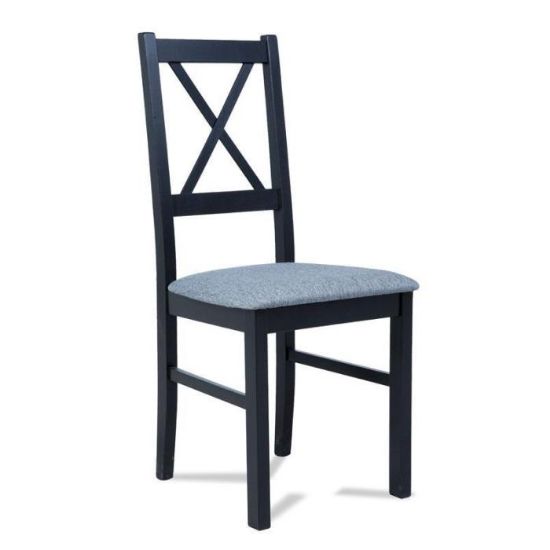 Siedzisko tapicerowane tkaniną Lars kolor popielatym. Stelaż krzesła wykonany jest z drewna bukowego w kolorze czarnym. Krzesło Alan idealnie wpasuje się w klasyczne wnętrze.