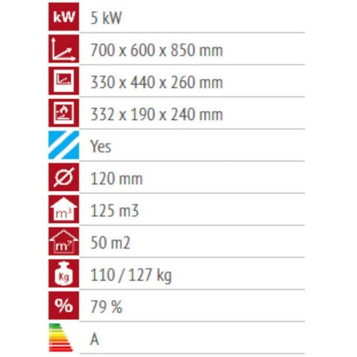 Skrzynia ogniowa, wyłożona dodatkowymi płytami, to nie tylko element konstrukcyjny, ale także inteligentne rozwiązanie, które zwiększa moc grzewczą kuchenki Donna 70. Nagrzewające się płyty efektywnie emitują ciepło do ogrzewanych pomieszczeń, umożliwiając skuteczne ogrzewanie pomieszczeń o powierzchni do 50 m².