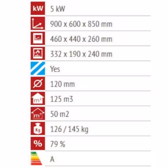 - moc grzewcza pozwala ogrzać do 50m2