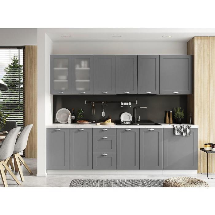 Zestaw jest świetnym rozwiązaniem, pozwoli przeprowadzić nawet szybką metamorfozę. Kolekcja obejmuje zarówno szafki z otwieranymi, uchylnymi drzwiami oraz szafki wyposażone w szuflady - zarówno jedne i drugie znajdują swoje zastosowanie w kuchni.