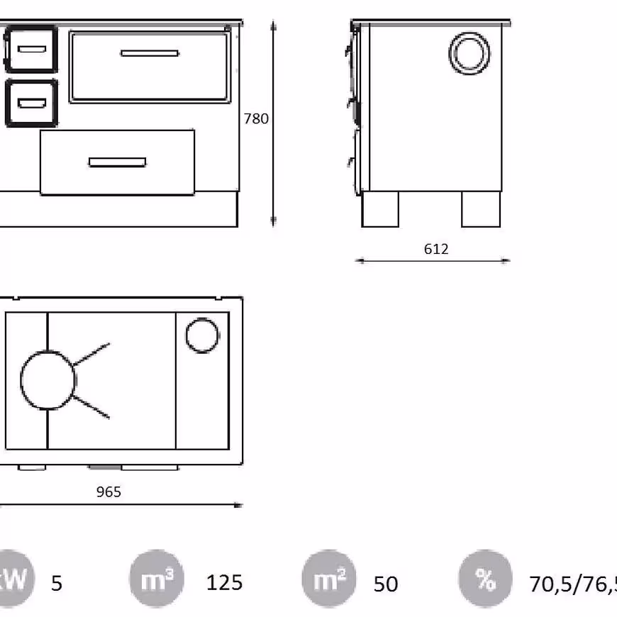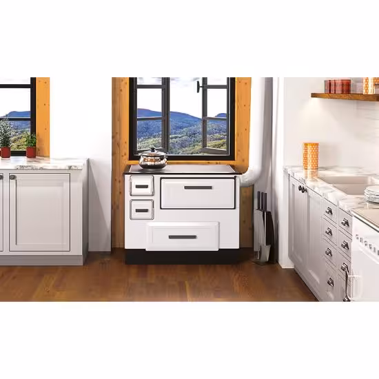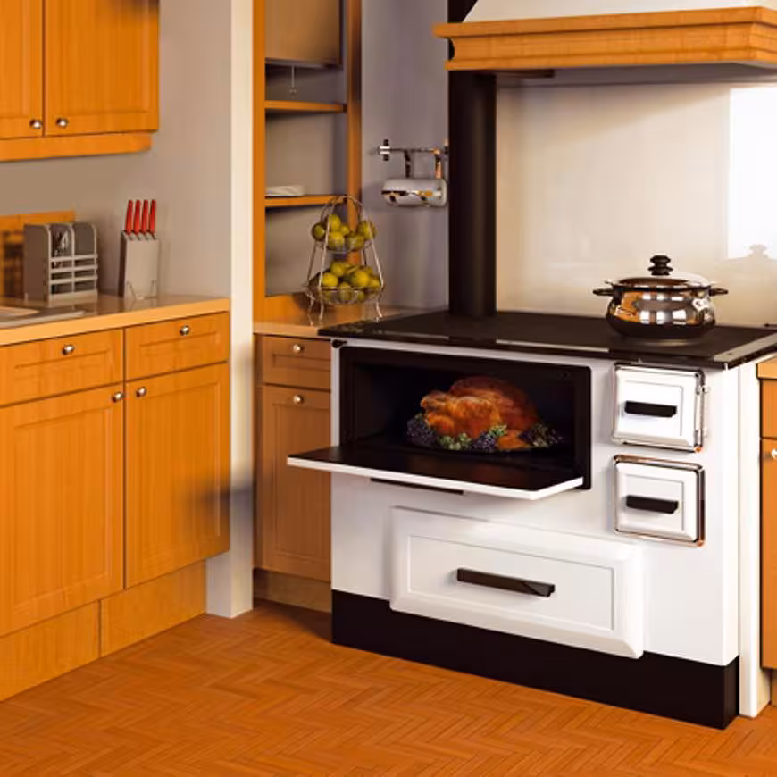 - Rodzaj paliwa: Ta kuchnia jest wszechstronna i przyjazna dla środowiska, ponieważ można ją zasilać drewnem lub brykietem liściastym.