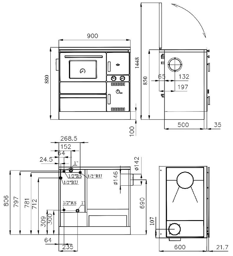 Łatwe podłączenie do komina: Kuchenkę można łatwo podłączyć do komina od prawej strony i w kierunku góry, co ułatwia instalację w różnych rodzajach pomieszczeń.