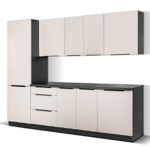 Kuchenne szafki Arona są nie tylko estetyczne, ale także praktyczne. Ich wymiary pozwalają na optymalne wykorzystanie przestrzeni w kuchni. Dzięki konstrukcji z płyty wiórowej laminowanej zarówno fronty, jak i korpusy są solidne i odporne na uszkodzenia. Fronty w kolorze cashmere, wykończone na mat, nadają kuchni elegancki i nowoczesny wygląd, podczas gdy czarne korpusy dodają kontrastu i sprawiają, że meble prezentują się wyjątkowo stylowo.
