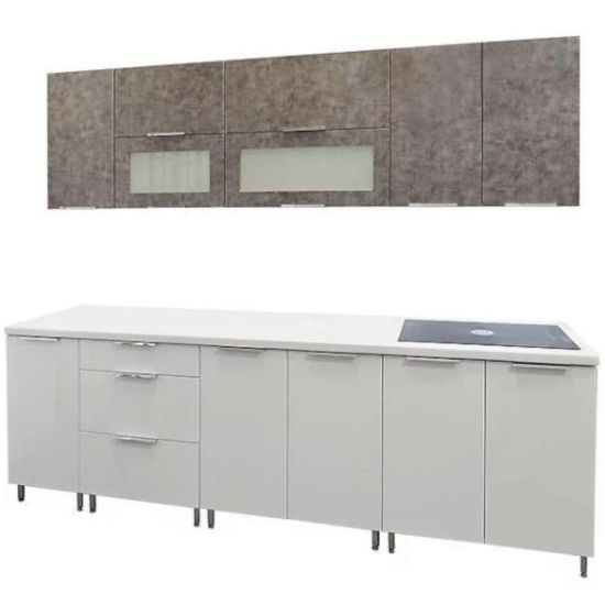 Kuchnia Bella - zestaw w jasnoszarej kolorystyce nada wnętrzu nowoczesności - to idealne połązenie do wnętrz industrialnych. W zestawie zastosowano proste lekkie bryły, dzięki czemu kuchnia nabiera eleganckiego charakteru i wydaje się też być bardziej przestronna. Gotowy zestaw mebli kuchennych to dobry sposób na estetyczne, szybkie i funkcjonalne umeblowanie kuchni. Zestaw obejmuje górne i dolne szafki kuchenne wykonane z wysokiej jakości trwałych materiałów, co podczas użytkowania jest bardzo ważne. Kuchnia z pewnością fantastycznie sprawdzi się w codziennym użytkowaniu.