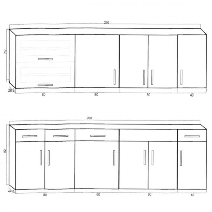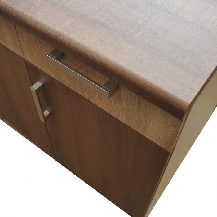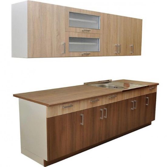 Kuchnia Blanca- zestaw w jasnej i ciemnej kolorystyce drewna nada wnętrzu nowoczesności, ale sprawi także, że pomieszczenie będzie bardzo przytulne. Dodatkowo ciemne i jasne drewniane wstawki są ciekawym elementem dekoracyjnym. W zestawie zastosowano proste lekkie bryły, dzięki czemu kuchnia nabiera eleganckiego charakteru i wydaje się też być bardziej przestronna. Gotowy zestaw mebli kuchennych to dobry sposób na estetyczne, szybkie i funkcjonalne umeblowanie kuchni. Zestaw obejmuje górne i dolne szafki kuchenne wykonane z wysokiej jakości trwałych materiałów, co podczas użytkowania jest bardzo ważne. Kuchnia z pewnością fantastycznie sprawdzi się w codziennym użytkowaniu.