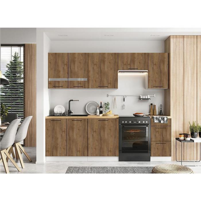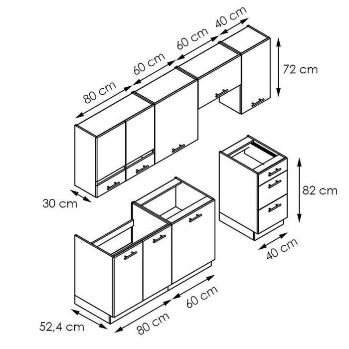 Zestaw jest świetnym rozwiązaniem, pozwoli przeprowadzić nawet szybką metamorfozę. Kolekcja obejmuje zarówno szafki z otwieranymi, uchylnymi drzwiami oraz szafki wyposażone w szuflady - zarówno jedne i drugie znajdują swoje zastosowanie w kuchni.
