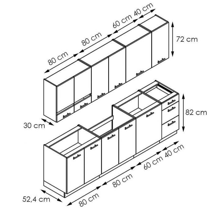 - Szerokość szafek górnych [cm]: 80,80,60,40