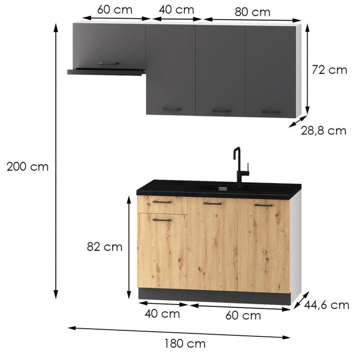Charakterystyczną cechą kolekcji Clara jest elegancki dekor w kolorze szary grafit, który nadaje kuchni wyjątkowego, nowoczesnego charakteru. Połączenie szarości z kolorem dąb artisan tworzy harmonijny kontrast i dodaje wnętrzu subtelnego piękna. Zarówno fronty, jak i korpusy mebli są wykończone matową powłoką, co nadaje całej kolekcji nowoczesnego wyglądu i przyjemnego w dotyku wykończenia.