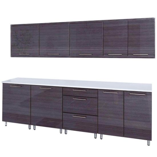 Kuchnia Costa Rica - zestaw mebli, które nadadzą każdemu wnętrzu nowoczesności. Ciemne i lakierowane fronty powiększą optycznie każdą kuchnię. W zestawie zastosowano proste lekkie bryły w połysku, dzięki czemu kuchnia nabiera eleganckiego charakteru, ale wydaje się też być przestronna. Gotowy zestaw mebli kuchennych to dobry sposób na estetyczne, szybkie i funkcjonalne umeblowanie kuchni.