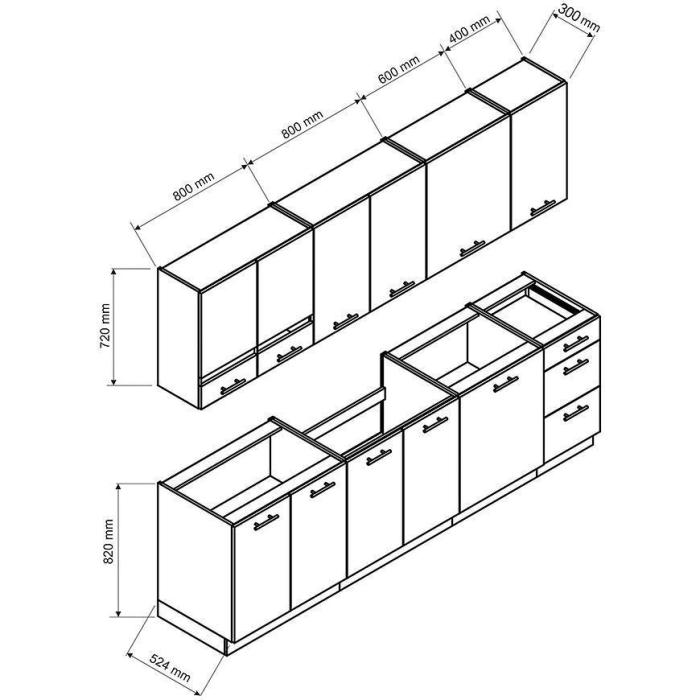 Zestaw jest świetnym i funkcjonalnym rozwiązaniem, pozwoli przeprowadzić szybką metamorfozę Twojego wnętrza. Kolekcja obejmuje szafki z otwieranymi, uchylnymi drzwiami oraz szafki wyposażone w szuflady - zarówno jedne i drugie znajdą swoje zastosowanie w kuchni.