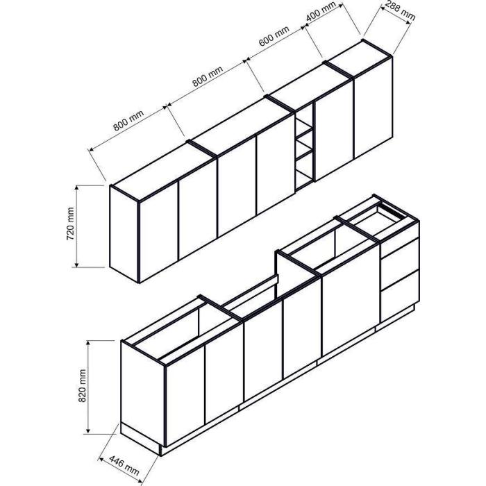 Zestaw jest świetnym i funkcjonalnym rozwiązaniem, pozwoli przeprowadzić szybką metamorfozę Twojego wnętrza. Kolekcja obejmuje szafki z otwieranymi, uchylnymi drzwiami oraz szafki wyposażone w szuflady - zarówno jedne i drugie znajdą swoje zastosowanie w kuchni.