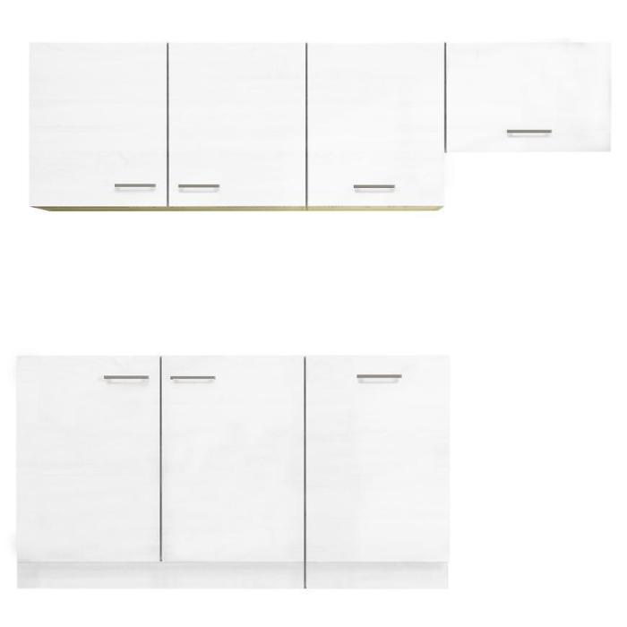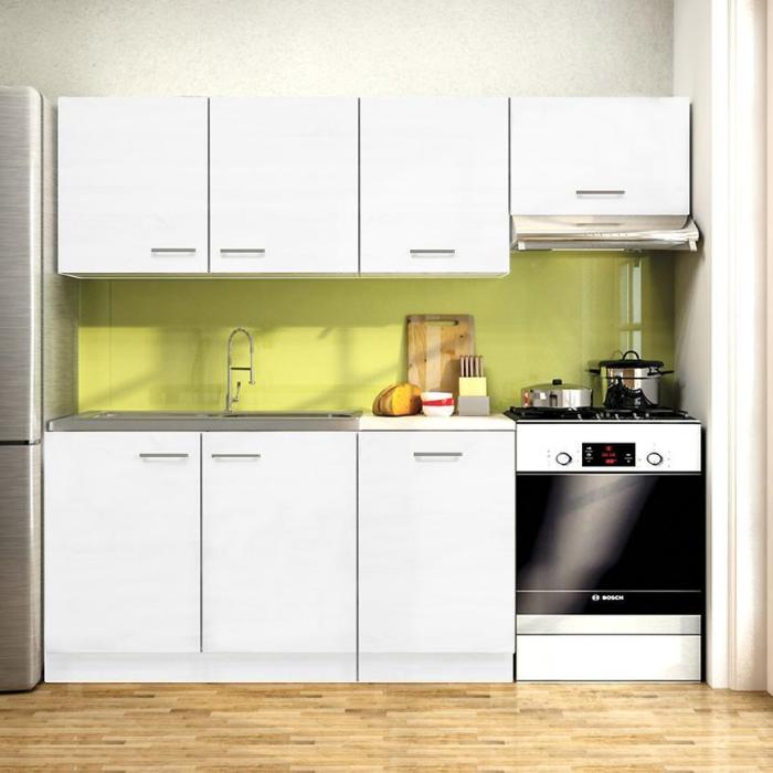 Kuchnia Ewa to zestaw mebli w kolorze białym z uchwytami. Został wykonany z płyty wiórowej laminowanej, które nadadzą każdemu wnętrzu nowoczesności. W zestawie zastosowano proste lekkie bryły z klasyczną kolorystyką. Gotowy zestaw mebli kuchennych to dobry sposób na estetyczne, szybkie i funkcjonalne umeblowanie kuchni. Zestaw obejmuje górne i dolne szafki kuchenne wykonane z wysokiej jakości trwałych materiałów, co podczas użytkowania jest bardzo ważne.