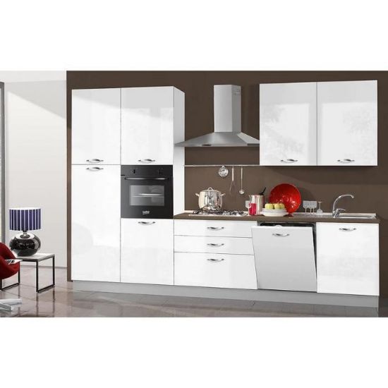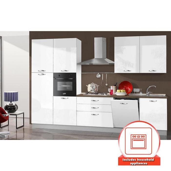 Minimalistyczna, klasyczna kuchnia Gio wpisze się w aranżację pomieszczeń w stylu nowoczesnym czy klasycznym. Dużym atutem jest blat oraz wyposażenie AGD w zestawie.