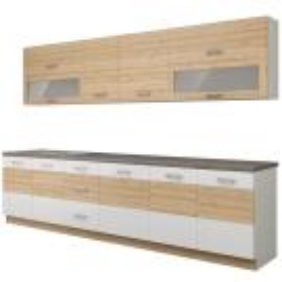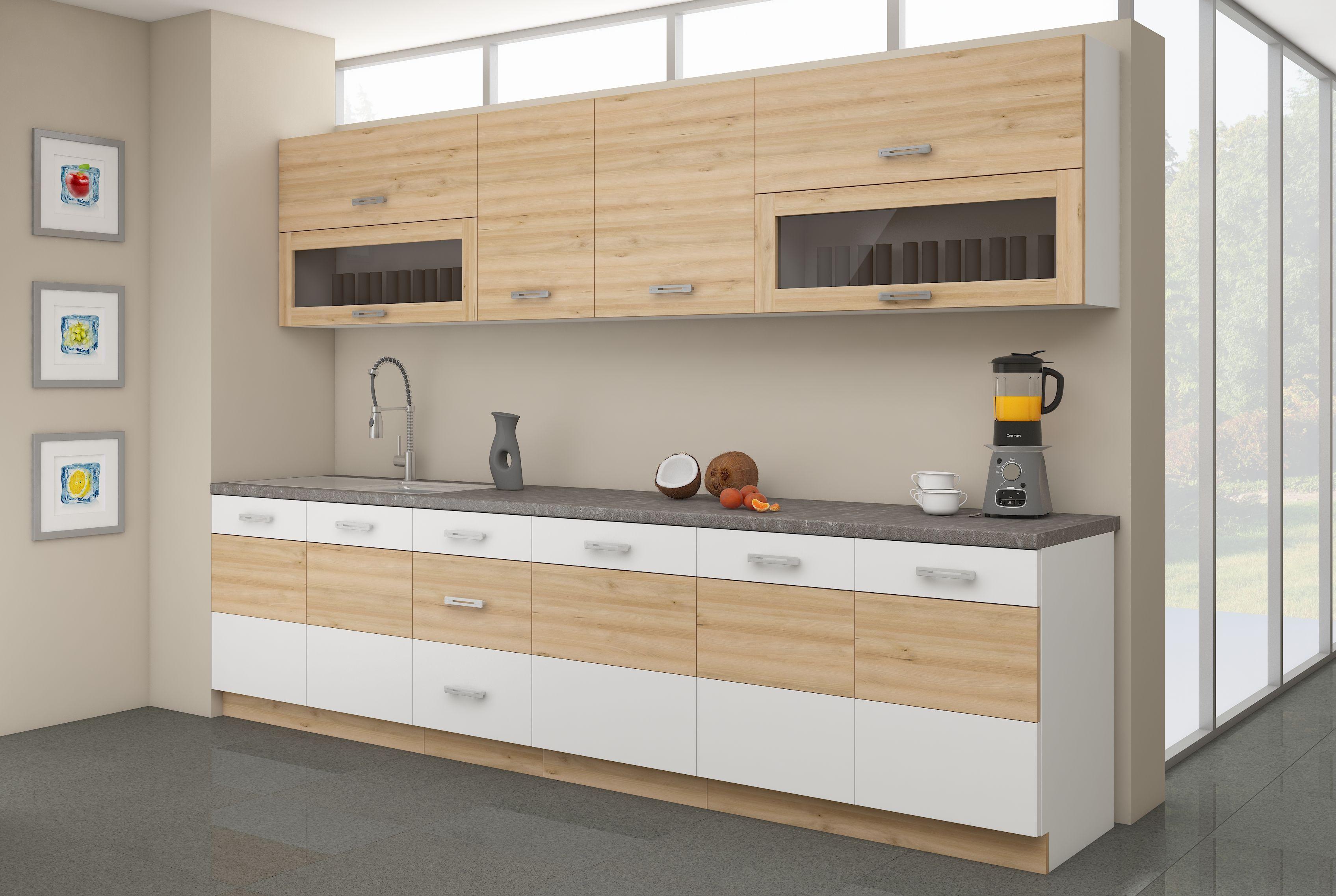 Meble kuchenne ICONIC to uniwersalna propozycja dla kuchni zamkniętych oraz otwartych. Korpus wykonany z płyty laminowanej w kolorze białym. Fronty w kuchni wykonane są z płyty laminowanej równiez w kolorze buk iconic, dodatkowo zabezpieczone folią odporną na termo warunki panujące w kuchni (ABS). Szafki wyposażone są w system cichego domyku. Szuflady również posiadają system cichego domyku. Meble Vigo to rozwiązanie dla tych, którzy cenią sobie wygodę i indywidualny styl.