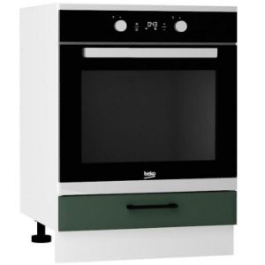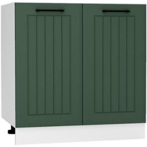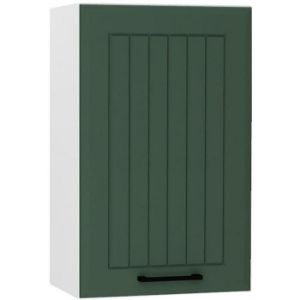 Kolekcja szafek kuchennych Irma może być nie tylko funkcjonalnym wykończeniem Twojej kuchni, ale także estetycznym dopełnieniem wnętrza. Ciemno zielone matowe fronty idealnie kontrastują z białym korpusem, tworząc przytulne, ale także pełne charakteru wnętrze. Zielony kolor frontów będzie świetnie korespondował z drewnianym blatem, a także z betonem, marmurem czy inny surowym materiałem. Dodatkowy element ozdobny szafek stanowią lamele umieszczone na frontach, dodając im przy tym uroku, jednocześnie wpisując się idealnie w nowoczesne czy klasyczne aranżacje. Różnorodne gałki i uchwyty dostepne w naszej ofercie świetnie dopełnią całość, stanowiąc ciekawy akcent. Cichy domyk, który jest ujęty w zestawie podniesie komfort codziennego użytkowania mebli.