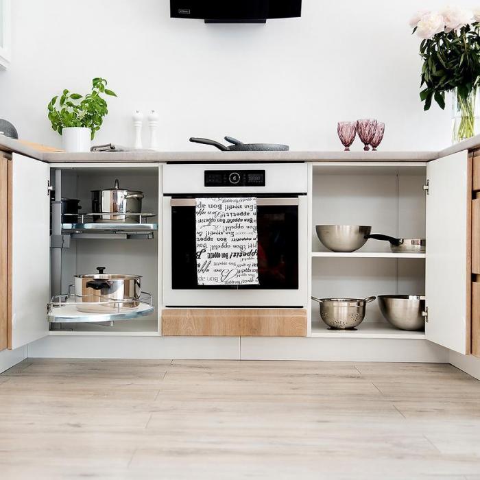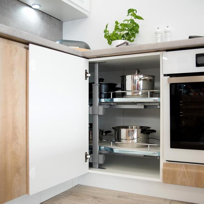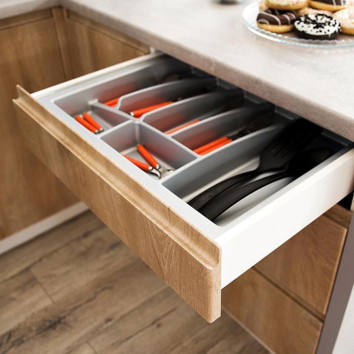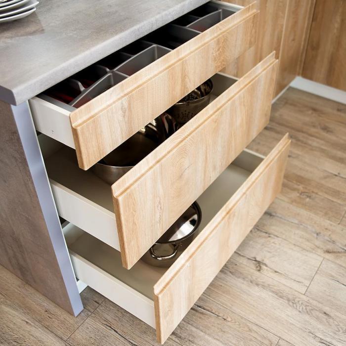 Zestaw jest świetnym rozwiązaniem, pozwoli przeprowadzić nawet szybką metamorfozę. Kolekcja obejmuje zarówno szafki z otwieranymi, uchylnymi drzwiami oraz szafki wyposażone w szuflady - zarówno jedne i drugie znajdują swoje zastosowanie w kuchni.