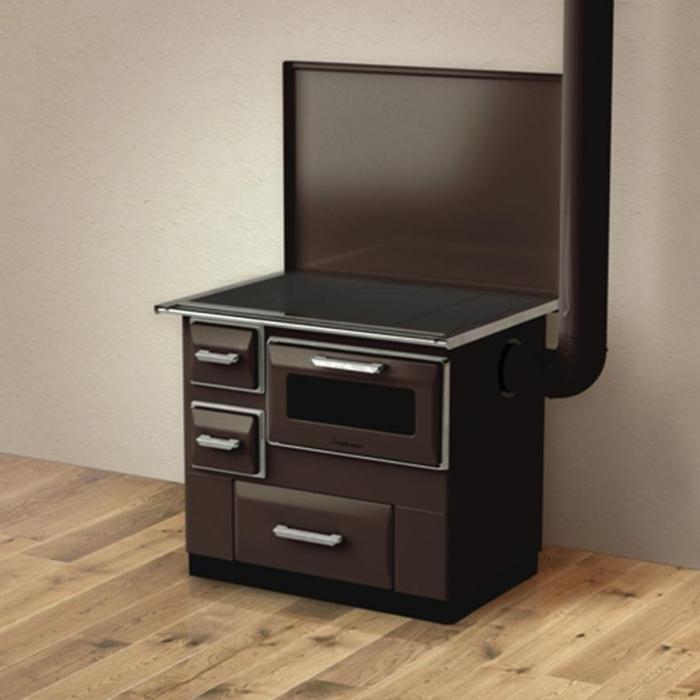 Funkcjonalna kuchnia, na której możesz gotować, piec oraz którą możesz ogrzać pomieszczenie. Palenisko wyłożone jest szamotem. Kuchnia posiada szufladę do przechowywania drewna, żaroodporne szkło w technologii „czysta szyba” oraz pokrywę na płytę grzewczą.