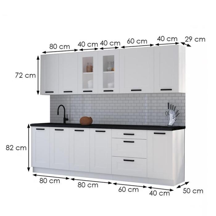 Zestaw jest świetnym i funkcjonalnym rozwiązaniem, pozwoli przeprowadzić szybką metamorfozę Twojego wnętrza. Kolekcja obejmuje szafki z otwieranymi, uchylnymi drzwiami oraz szafki wyposażone w szuflady - zarówno jedne i drugie znajdą swoje zastosowanie w kuchni.