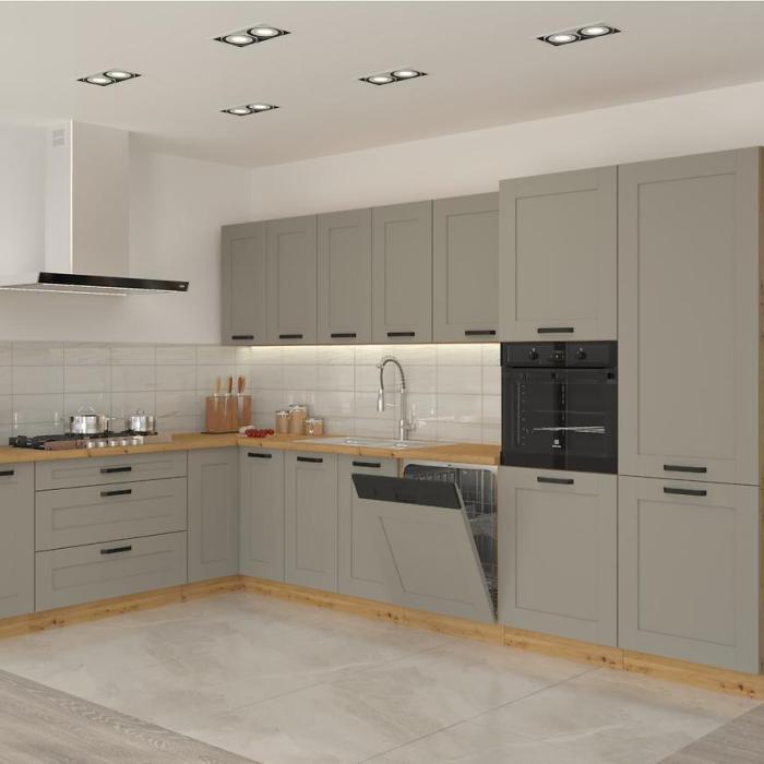 Zestaw mebli kuchennych LUNA w kolorze frontu claygrey z matowym wykończeniem, korpus w kolorze artisan idealnie wpisze się w aranżację pomieszczeń w stylu tradycyjnym i nowoczesnym.