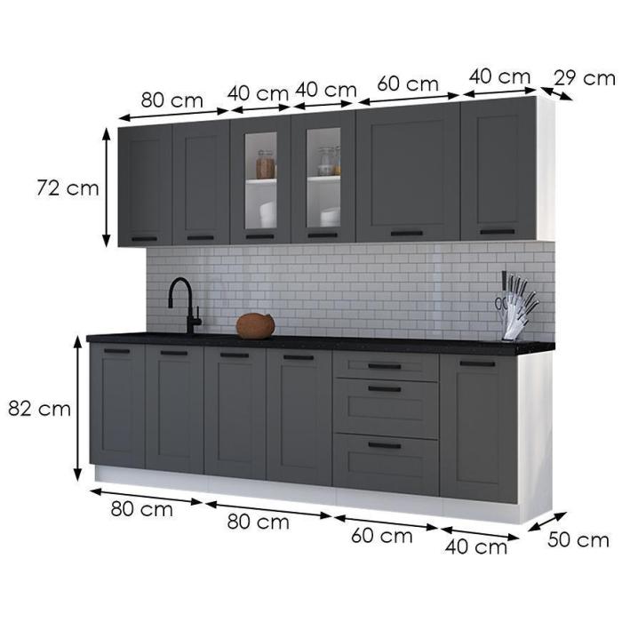 Zestaw jest świetnym i funkcjonalnym rozwiązaniem, pozwoli przeprowadzić szybką metamorfozę Twojego wnętrza. Kolekcja obejmuje szafki z otwieranymi, uchylnymi drzwiami oraz szafki wyposażone w szuflady - zarówno jedne i drugie znajdą swoje zastosowanie w kuchni.