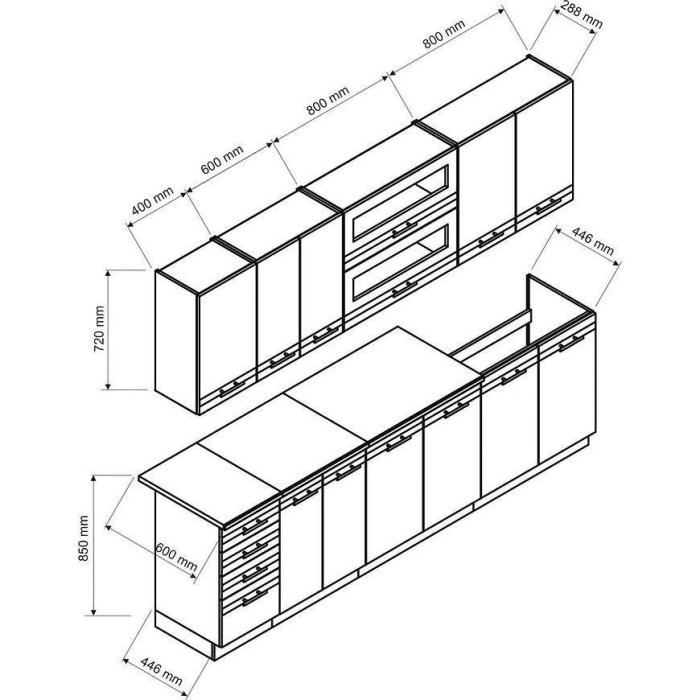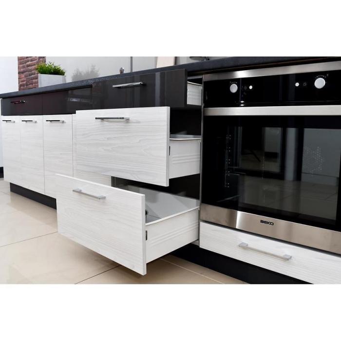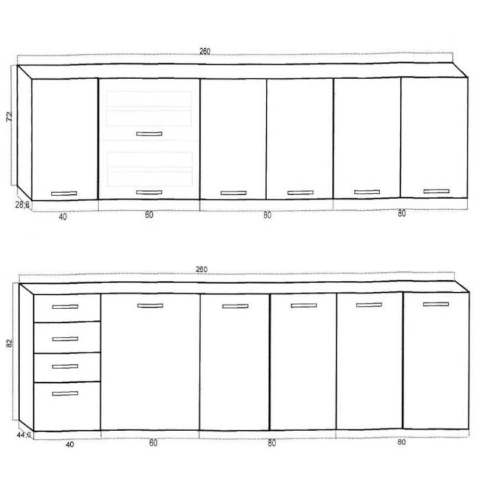 Kuchnia Lungo - zestaw w jasnej i ciemnej kolorystyce nada wnętrzu nowoczesności, ale sprawi także, że pomieszczenie będzie bardzo przytulne. Dodatkowo ciemne i jasne drewniane wstawki są ciekawym elementem dekoracyjnym. W zestawie zastosowano proste lekkie bryły, dzięki czemu kuchnia nabiera eleganckiego charakteru i wydaje się też być bardziej przestronna. Gotowy zestaw mebli kuchennych to dobry sposób na estetyczne, szybkie i funkcjonalne umeblowanie kuchni. Zestaw obejmuje górne i dolne szafki kuchenne wykonane z wysokiej jakości trwałych materiałów, co podczas użytkowania jest bardzo ważne. Zestaw posiada blat w kolorze petra beż o długości 60,80,40 cm. Szafki posiadają rownież uchwyty. Kuchnia z pewnością fantastycznie sprawdzi się w codziennym użytkowaniu. Meble do samodzielnego motażu.
