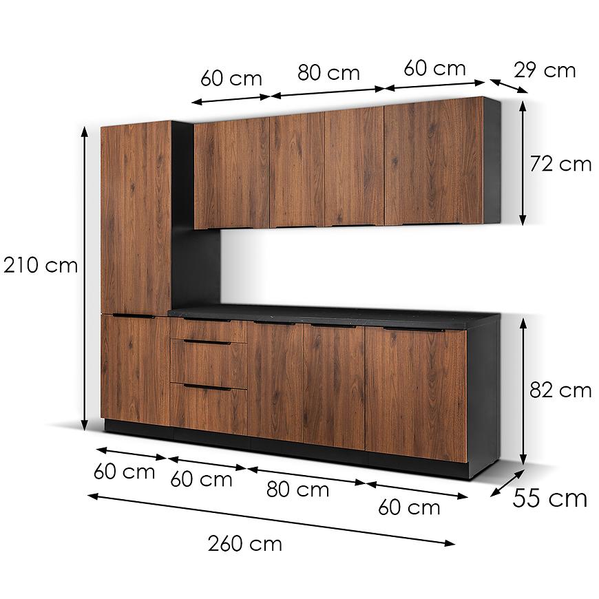 Kuchnia Monza Orzech Okapi to nie tylko miejsce przygotowywania smacznych potraw, ale również stylowy element aranżacji wnętrza. Zestaw o imponującej szerokości 260 cm i nowoczesnym designie wprowadza do kuchni elegancję, jednocześnie oferując funkcjonalność i wygodę.
