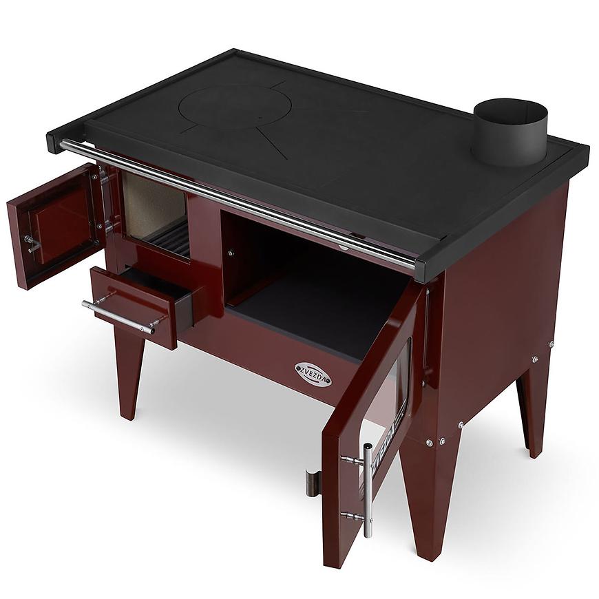 Kuchnia ZVEZDA Narodna E łączy w sobie prostotę rozwiązań z solidnym wykonaniem. Wyposażona jest w grubą stalową płytę grzewczą, co zapewnia równomierne i efektywne rozprowadzanie ciepła. Dodatkowo, kuchnia ta posiada wbudowaną fajerkę, co pozwala na korzystanie z tradycyjnego, niezawodnego źródła ciepła, co jest nieocenione podczas przygotowywania tradycyjnych dań.