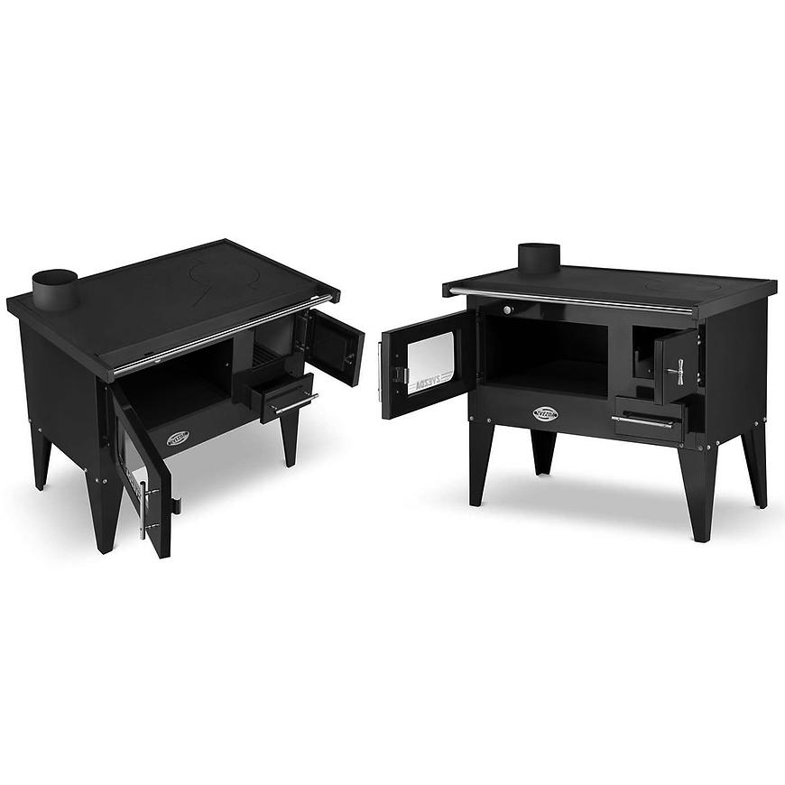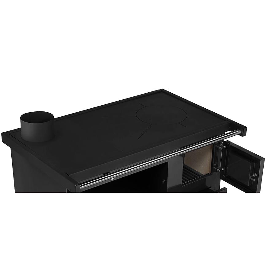 Kuchnia ZVEZDA Narodna E łączy w sobie prostotę rozwiązań z solidnym wykonaniem. Wyposażona jest w grubą stalową płytę grzewczą, co zapewnia równomierne i efektywne rozprowadzanie ciepła. Dodatkowo, kuchnia ta posiada wbudowaną fajerkę, co pozwala na korzystanie z tradycyjnego, niezawodnego źródła ciepła, co jest nieocenione podczas przygotowywania tradycyjnych dań.