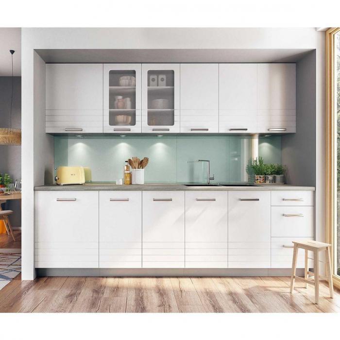 Kuchnia Paula - zestaw w białej kolorystyce nada wnętrzu nowoczesności, ale sprawi także, że pomieszczenie będzie bardzo przytulne. W zestawie zastosowano proste lekkie bryły, dzięki czemu kuchnia nabiera eleganckiego charakteru i wydaje się też być bardziej przestronna. Dodatkowo delikatne frezowania będą ciekawym dodatkiem i elementem dekoracyjnym kuchni . Gotowy zestaw mebli kuchennych to dobry sposób na estetyczne, szybkie i funkcjonalne umeblowanie kuchni. Zestaw obejmuje górne i dolne szafki kuchenne wykonane z wysokiej jakości trwałych materiałów, co podczas użytkowania jest bardzo ważne. Kuchnia z pewnością fantastycznie sprawdzi się w codziennym użytkowaniu.
