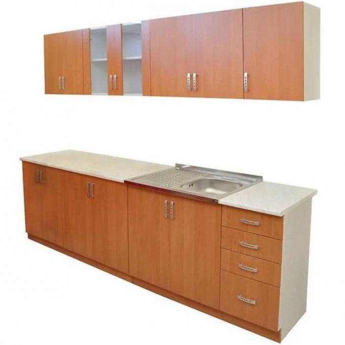 Kuchnia Sara - zestaw w jasnej i ciepłej kolorystyce nada wnętrzu nowoczesności, ale sprawi także, że pomieszczenie będzie bardzo przytulne. W zestawie zastosowano proste lekkie bryły, dzięki czemu kuchnia nabiera eleganckiego charakteru i wydaje się też być bardziej przestronna. Gotowy zestaw mebli kuchennych to dobry sposób na estetyczne, szybkie i funkcjonalne umeblowanie kuchni. Zestaw obejmuje górne i dolne szafki kuchenne wykonane z wysokiej jakości trwałych materiałów, co podczas użytkowania jest bardzo ważne. Kuchnia z pewnością fantastycznie sprawdzi się w codziennym użytkowaniu.