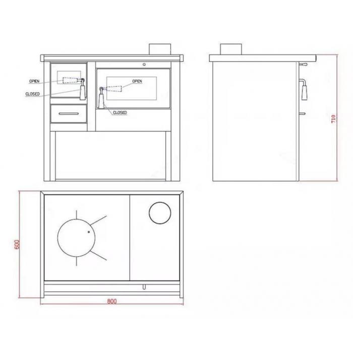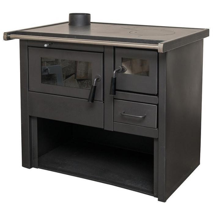 Wartościowy dodatek to obszerny schowek, który umożliwia przechowywanie drewna w zasięgu ręki, co zawsze jest wygodne przy obsłudze kominka. Dodatkowo, popielnik ułatwia utrzymanie porządku wokół kuchni, eliminując konieczność częstego sprzątania.
