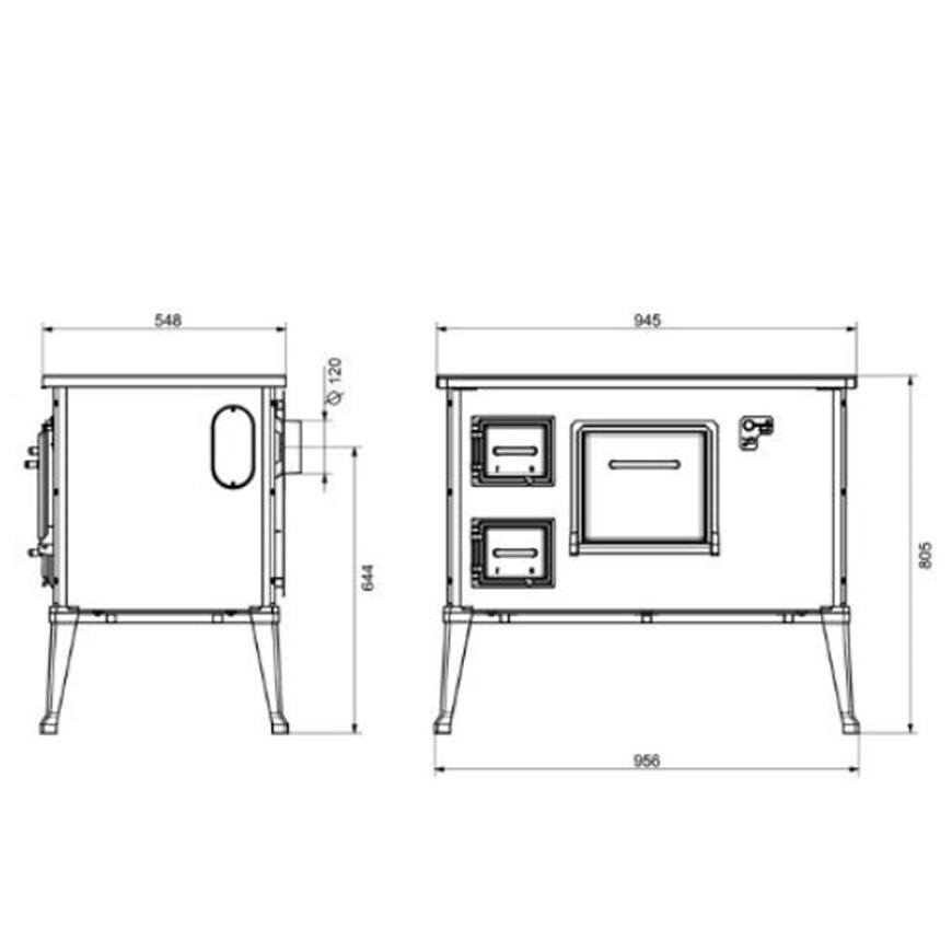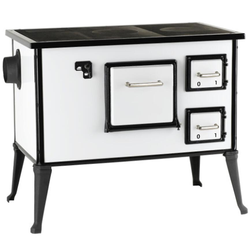 Kuchnia TYP127 została zaprojektowana z myślą o wygodzie i bezpieczeństwie. Załadunek paliwa odbywa się od frontu, a drzwi otwierają się w prawą stronę, co ułatwia obsługę. Wyjmowany popielnik umożliwia szybkie i czyste usuwanie popiołu, natomiast deflektor spalin poprawia jakość spalania i podnosi sprawność urządzenia.