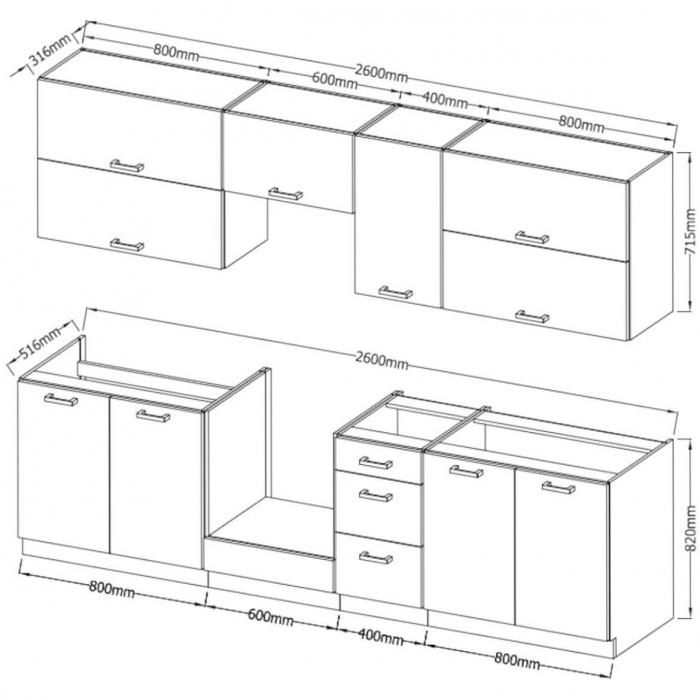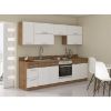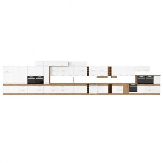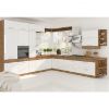 Kolekcja mebli do kuchni Vigo to harmonia stylu i funkcjonalności. Wykonane z najwyższej jakości płyty wiórowej laminowanej, te meble łączą w sobie trwałość z eleganckim wyglądem. W dekorze biały z elementami w kolorze dąb lancelot, kolekcja Vigo dodaje kuchni wyjątkowego charakteru.