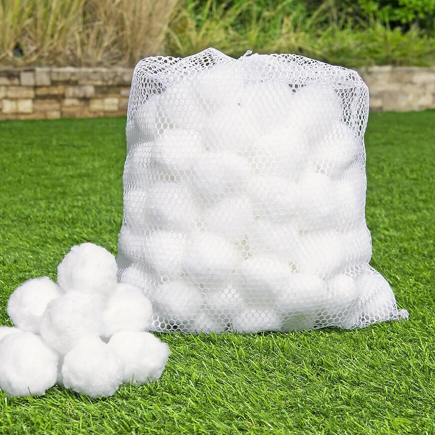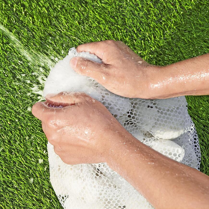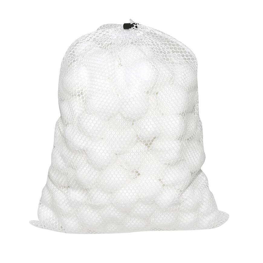 W zestawie znajduje się praktyczny siatkowy worek, który ułatwia płukanie kulek. Wystarczy ręczne wypłukanie, aby przygotować je do ponownego użycia. To rozwiązanie docenią osoby szukające wygodnych i oszczędnych akcesoriów basenowych.