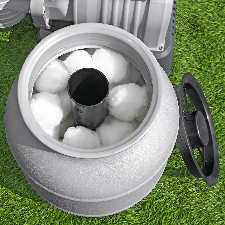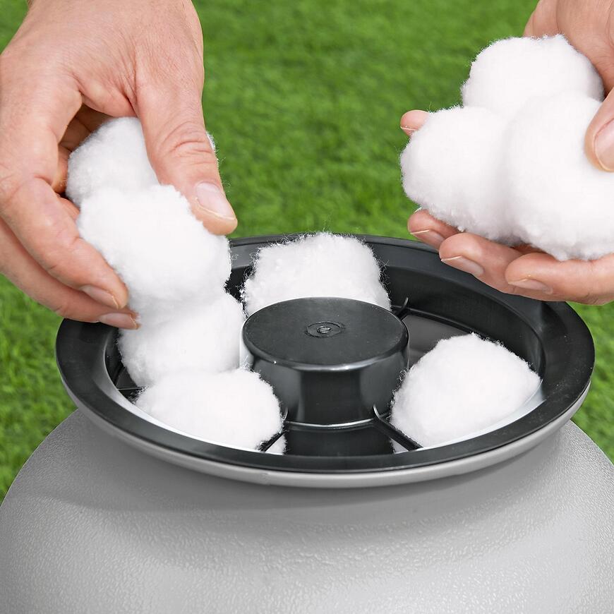 Kule filtracyjne Bestway wykonane są z nietoksycznego materiału nadającego się do recyklingu. Ich struktura przypomina bawełnę, co pozwala skutecznie zatrzymywać drobne zanieczyszczenia, takie jak piasek, liście czy osady. Przy prawidłowej konserwacji kulki filtracyjne mogą być używane przez okres od 4 do 6 miesięcy, co znacząco ogranicza ilość odpadów w porównaniu do jednorazowego piasku.