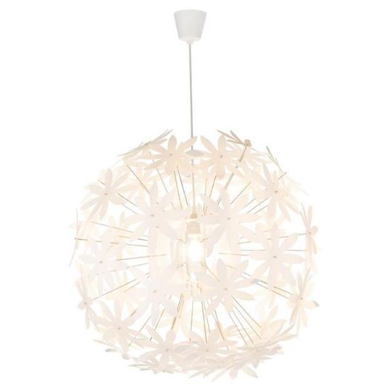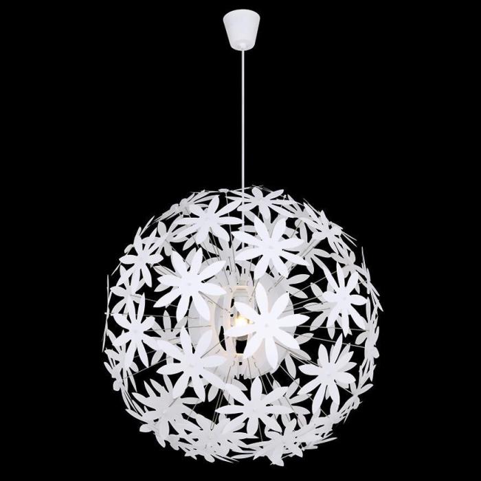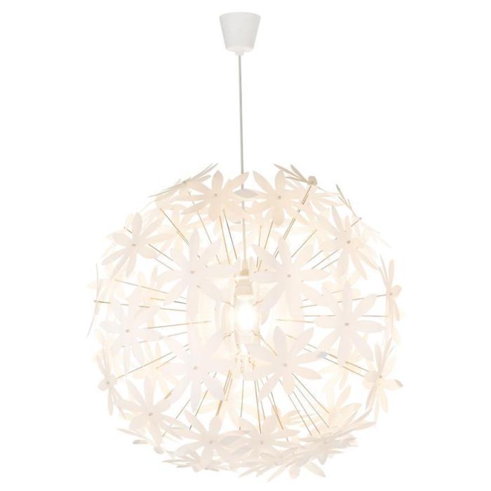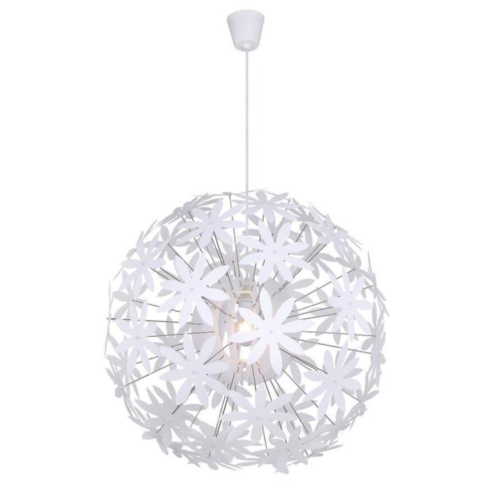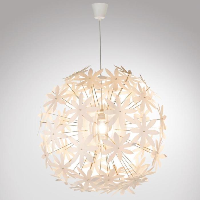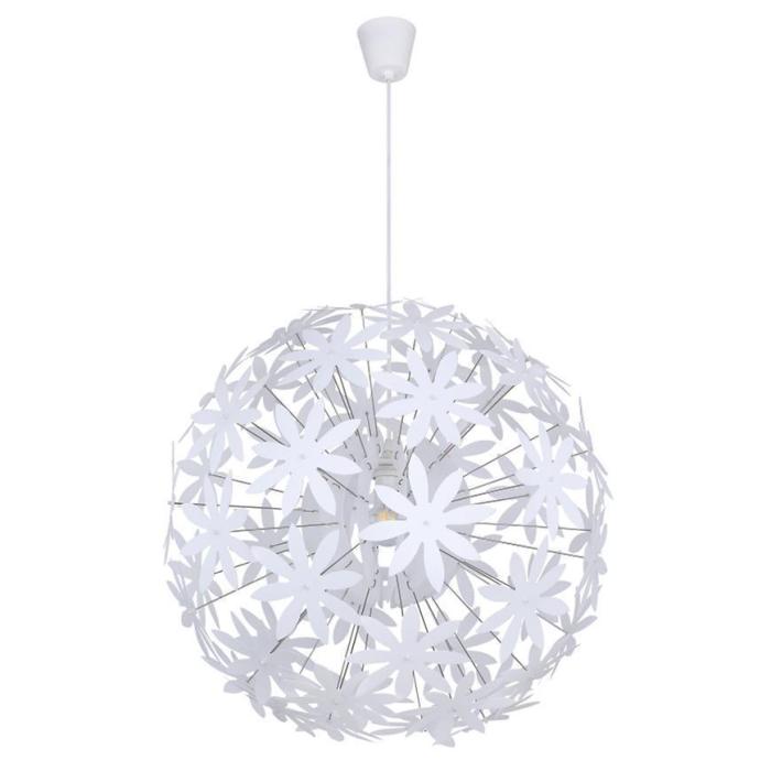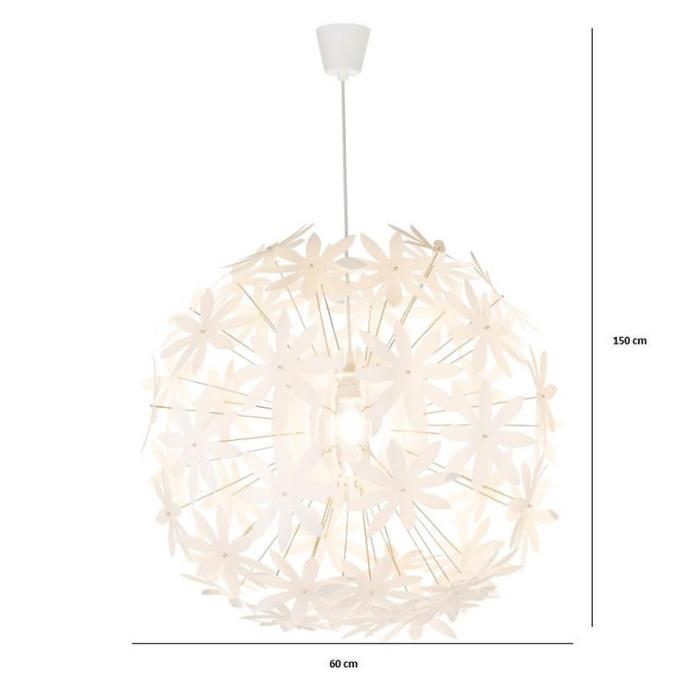 Lampa wisząca z białymi kwiatami z tworzywa sztucznego.