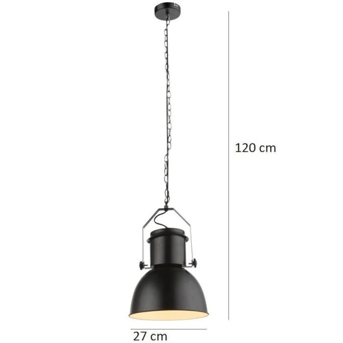 Lampa wisząca metalowa w kolorze czarnym, kabel w oplocie tekstylnym czarny.