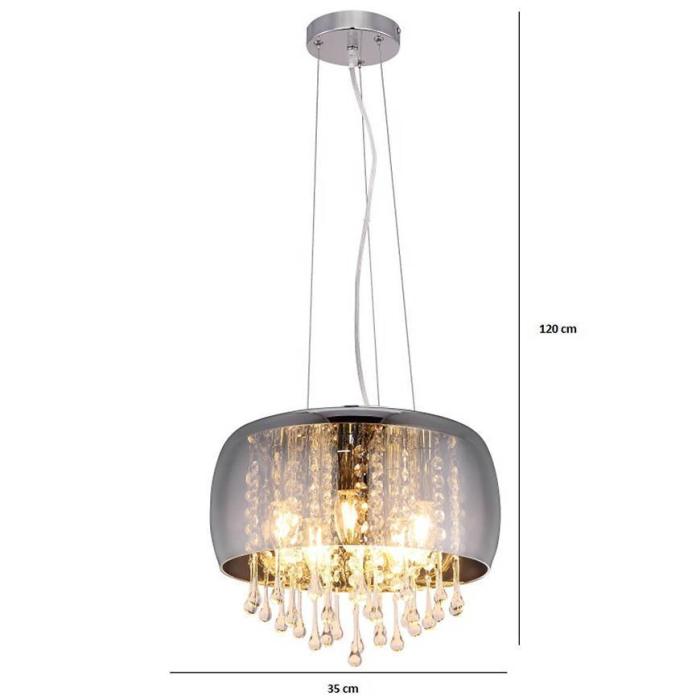 Lampa sufitowa wykonana jest z chromu, szkło przydymione oraz szklane kryształy czyste.