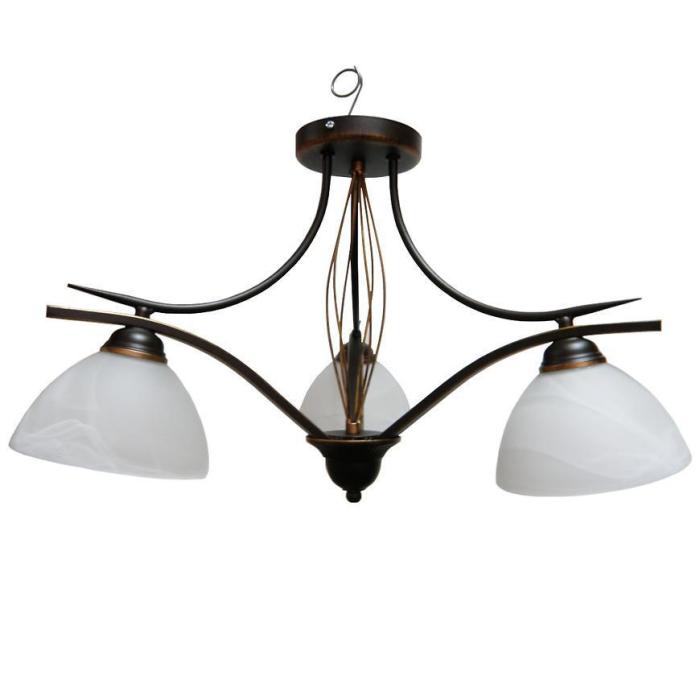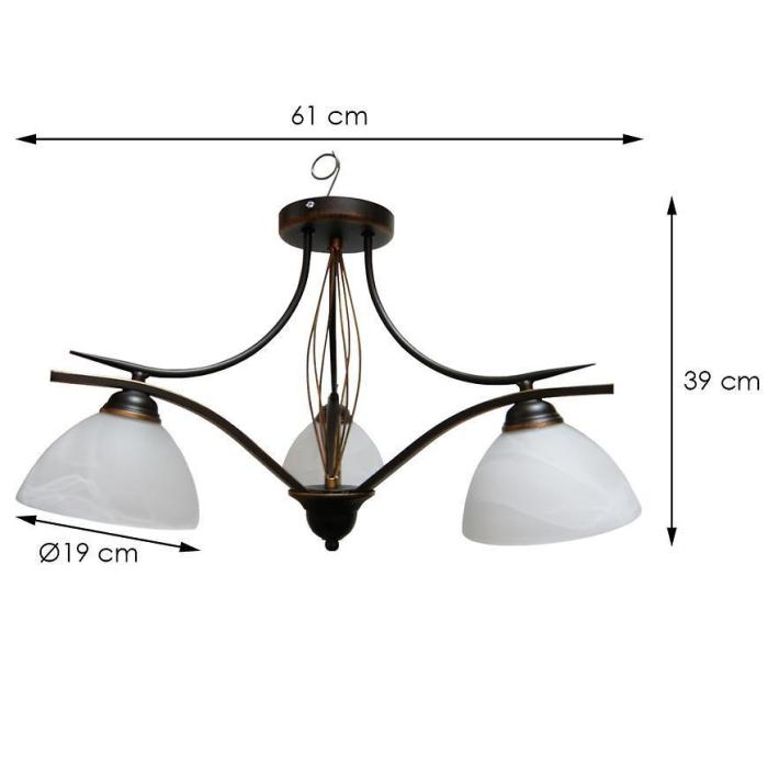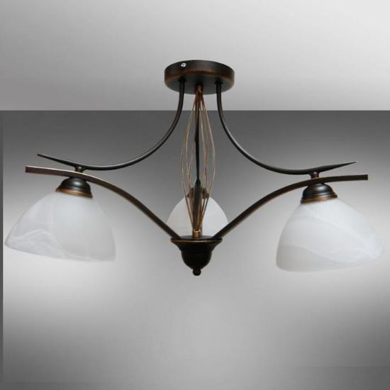 Lampa sufitowa wykonana z metalu w kolorze brązowym, szklany klosz.
