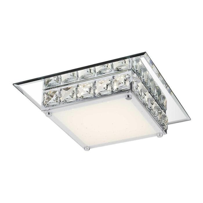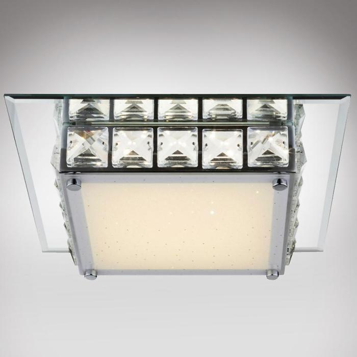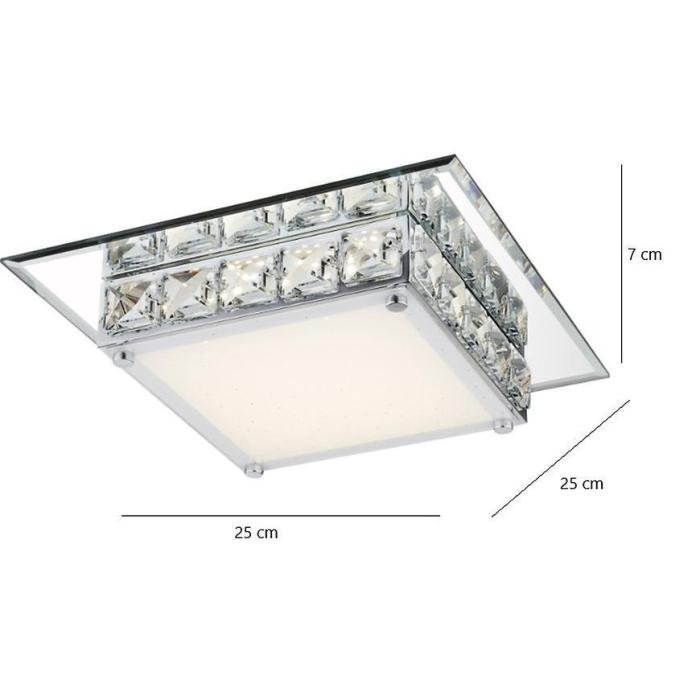 Plafon LED / Lampa sufitowa w kolorze chromu, szkło opalizowane, K5 kryształ, lustrzane krawędzie.