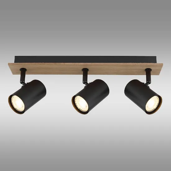 Lampa 57905-3 Ls3 to rozbudowana wersja popularnego oświetlenia punktowego, zaprojektowana z myślą o wnętrzach, w których liczy się zarówno estetyka, jak i możliwość precyzyjnego doświetlenia przestrzeni. Konstrukcja wykonana z metalu została wykończona w kolorze imitacji drewna, dzięki czemu lampa sufitowa dobrze odnajduje się w nowoczesnych, loftowych oraz skandynawskich aranżacjach.