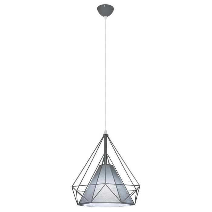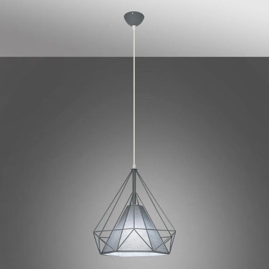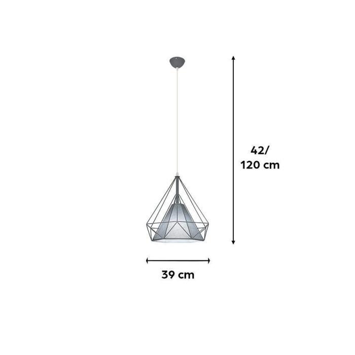 Lampa wisząca w kolorze szarym i możliwością dostosowania wysokości 42-120 cm.